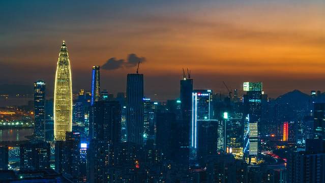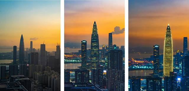 白天的深圳云淡风轻,忙碌的城市在阳光之下井然有序,到了傍晚,华灯初上,彩霞漫天,高楼大厦争相媲美,自然的光辉与科技的色彩在此刻交汇,是那般的绚烂多姿,远处的点点渔灯让这座城市的夜更加美丽精彩。