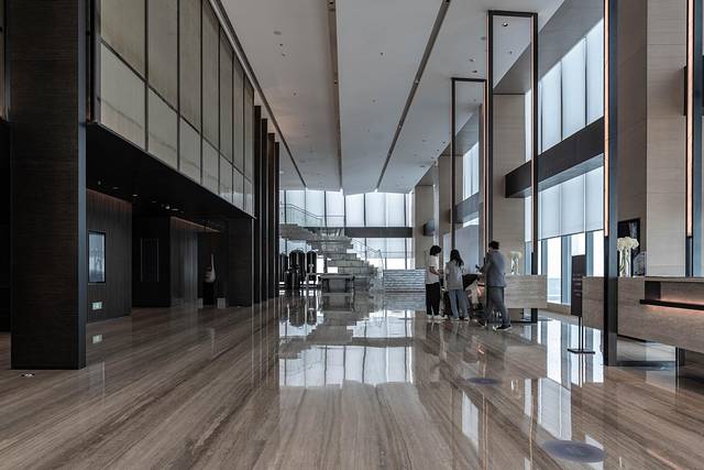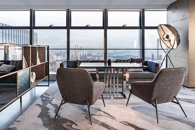 而负责办理入住的是在57楼的空中大堂,四周大型的落地玻璃,将万丽酒店的位置优势体现得淋漓尽致。