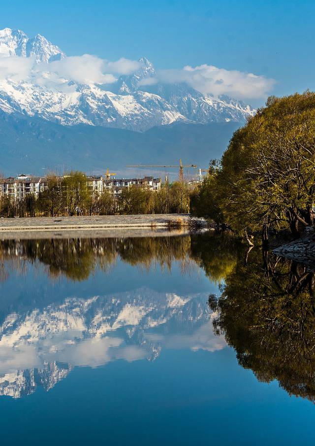 泉水从象山脚下的古栗树下涌出,汇成一汪湖水,清澈如玉,水底游鱼穿梭在水草间,潭畔花草树木繁茂,楼台亭阁点缀其间,雄伟壮丽的玉龙雪山倒映在潭水中,与园中亭台楼阁争相辉映,即使没有文人骚客的妙笔生花,黑龙潭已是一幅千古流芳的佳作。