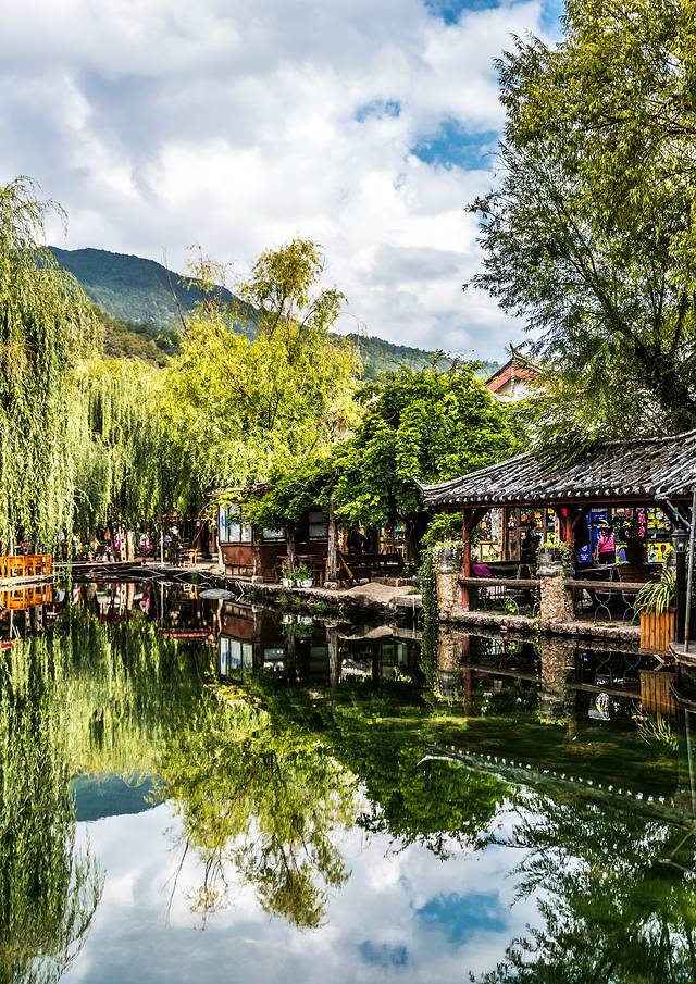 白天的古城没有夜晚热闹,如果你不知道去哪里,从丽江古城寻水源而上,人间仙境似的园林——黑龙潭就在不远处,晴天时,在那里拍雪山的倒影,很nice~