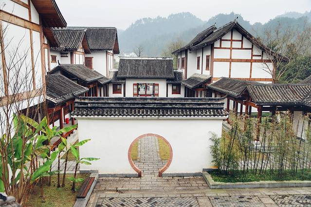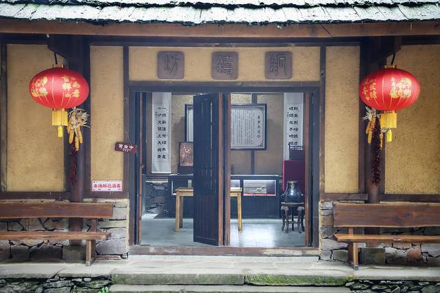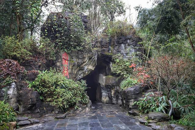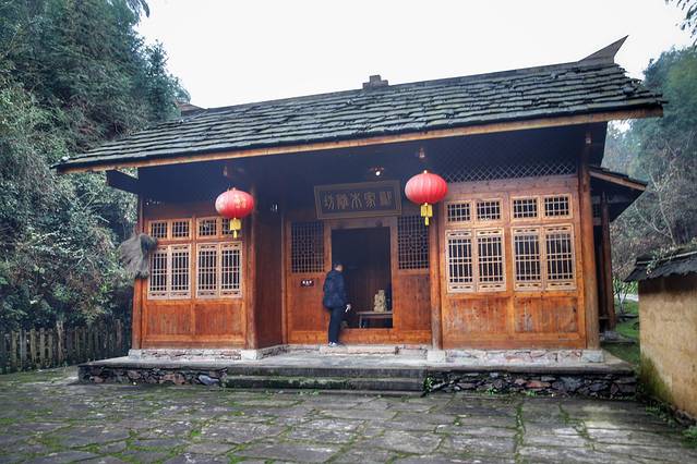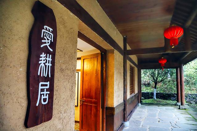 爱耕居,隐匿在景区秦古内,从桃花洞进入,便是《桃花源记》里记录的“初极狭,才通人”,进入后“复行数十步”便豁然开朗,再拾级而上,经过溪流,便来到了“爱耕居”。