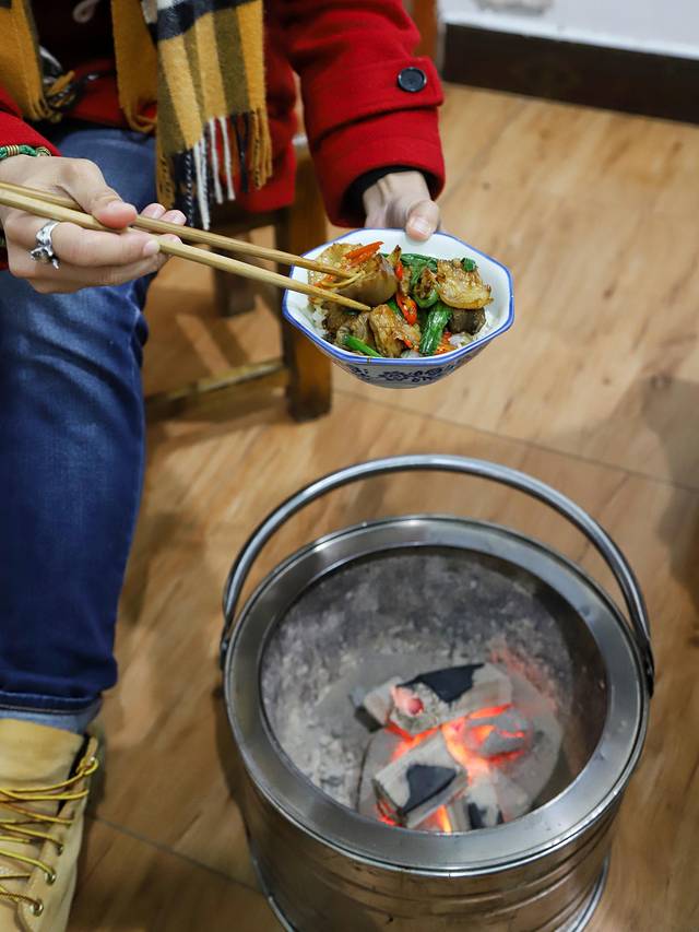 因为实在太冷,三个人各自开夹菜到碗里,然后窝在火炉边吃饭。。。竟然觉得挺温馨。