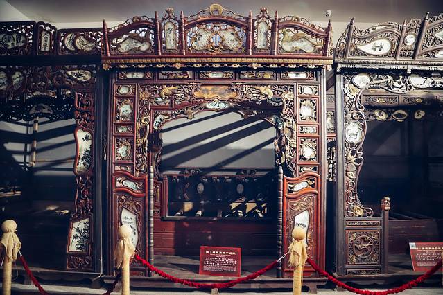 其中的镇店之宝是清朝的“隋和三代雕花床”,位于正门入口处。