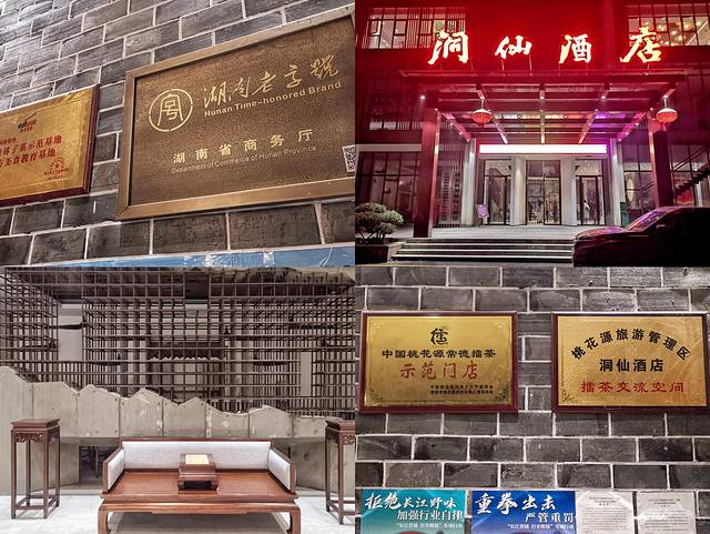 我们吃这一家叫做“洞仙酒店餐厅”,在 桃源 县相当有名,看到餐厅一楼挂着“ 中国 桃花源 常德 擂茶示范门店”,以及“擂茶交流空间”,想来也是有一定的江湖地位。