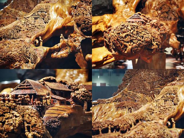 其中镇店之宝当属拿下了 上海 大世界基 尼斯 中国 之最的“桃花源根雕”,该根雕是用1300多年的岩柳木雕刻而成,全长15.88米,宽6.3米,高3米,由70多位技艺高超的 桃源 工工匠雕琢而成。