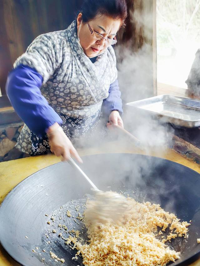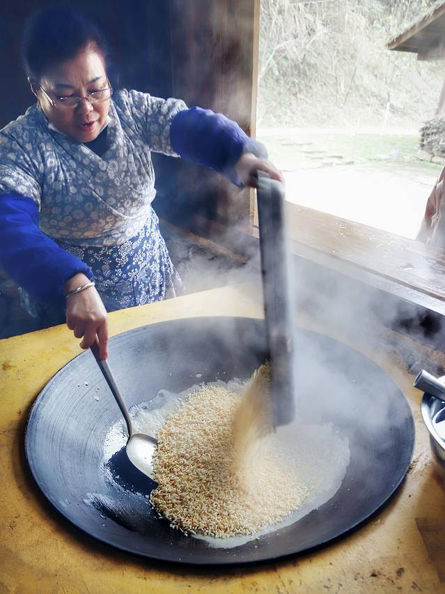 努力炒啊炒,我估摸着这个过程应该挺费手力,想想那么一大锅炒米粘着糖浆,这阻力得多大。