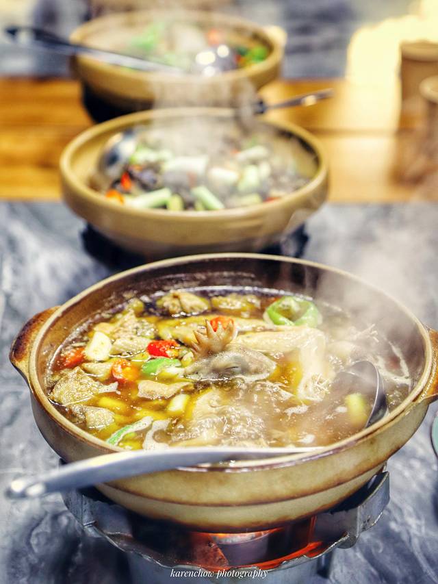 小火炉的火力控制也有讲究,先用大火炖,后用小火熬,其味先是浓鲜,吃道最后汤汁渐微,只剩一些油汁,这时干香的风味就出来了,也是最美味的时候。