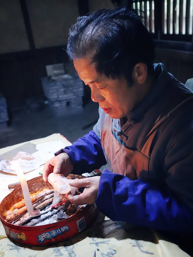 当我们走进铜铸坊的时候,他正在烛火前专心致志地做着他的公牛锁蜡膜,一辈子只做一件事,并且做到极致,这便是“工匠精神”。