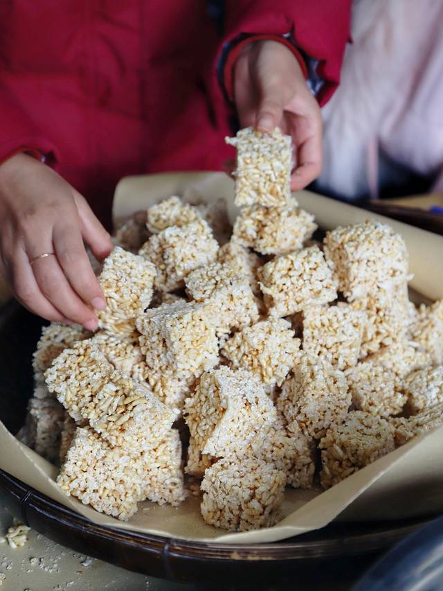 作为一个曾经制作过花生糖的人,决定亲自参与到制作米花糖的过程中,毕竟自己的劳动成果吃起来是特别香甜。