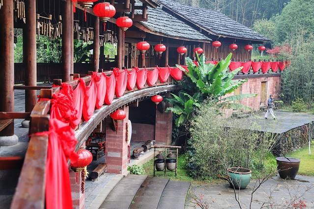 乍看寰楼让我想起了客家“围屋”,一个大环形结构,木质主体配上 中国 特色的红灯笼,特别抢眼。