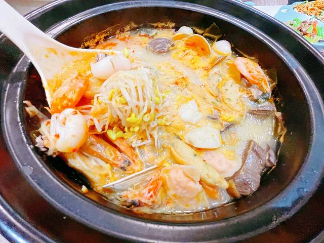 这道菜使用海南文昌铺前糟粕醋,是本地自然发酵的米糟。而且汤底金黄,里面有虾,墨鱼仔,鸭血等,配料十足,酸辣适中,是一道不可缺少的一道海南菜。