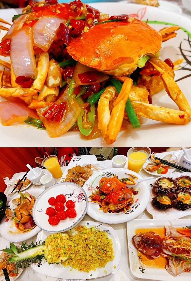 三点蟹:基本上都会点的一道菜,香辣可口,螃蟹个头很大,肉多鲜嫩。加入其中的一些小蔬菜也很好吃,我们最后后全部都吃光了。