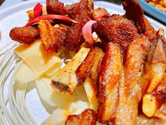 网红绿衣酥脆排骨:这道菜从颜值和口味都没得说,排骨很嫩,而且超好吃,我看到几乎每个桌子上都有这道菜,看来老少皆宜,十足的网红款呀。