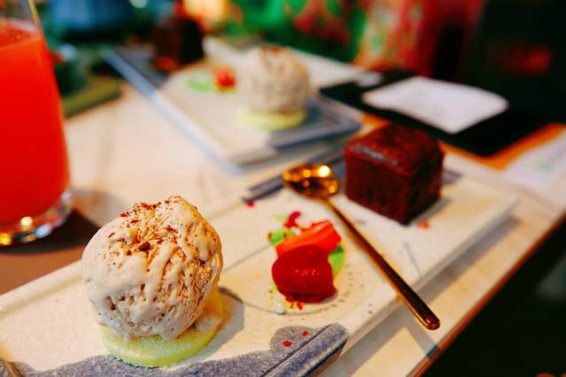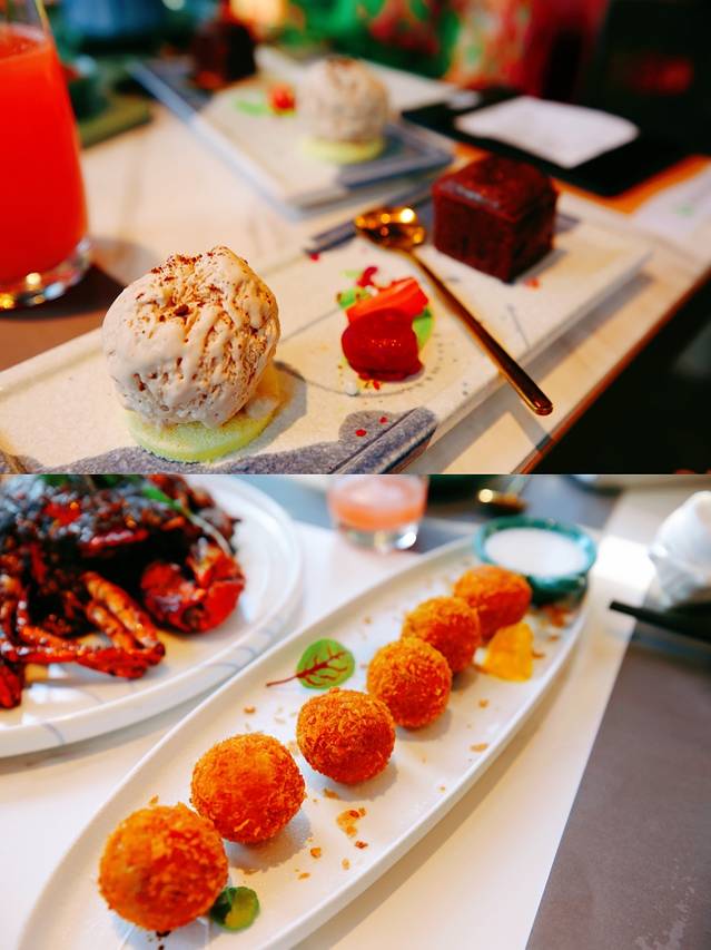 🍰巧克力熔岩蛋糕:冰激凌是喜欢甜食的朋友不能错过的,熔岩蛋糕味道很甜,里面的馅也很好吃,虽然担心会胖,但还是忍不住全部吃光光了。