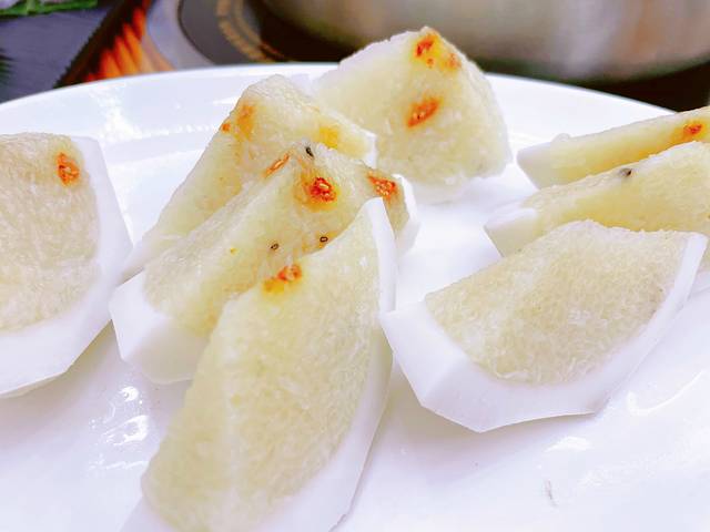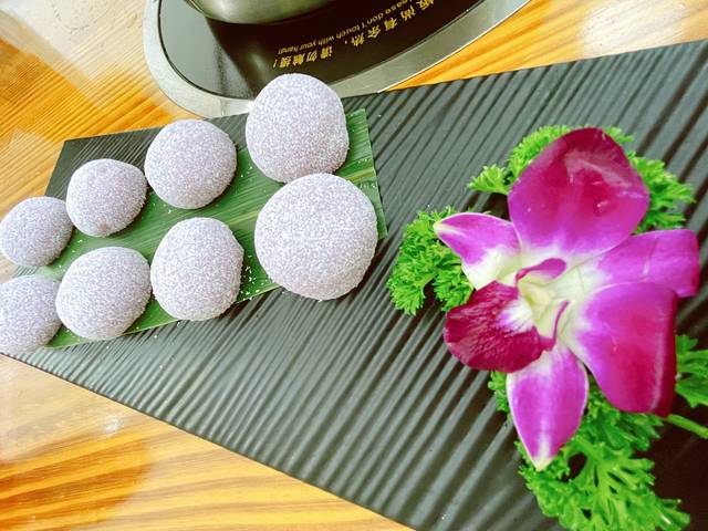 🥥椰蓉一口香:这是一道甜点,吃起来有点凉,特别清爽。是用香芋做的,喜欢甜食的朋友千万不要错过。