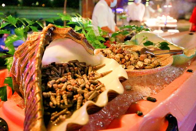 晚上我们就选择在酒店用餐了,从早上就在游玩,逛完免税店就觉得很累。商量过后决定就在酒店用餐。酒店的晚餐非常丰富,选择的种类也有很多。可以选择吃日式火锅,也可以选择在露天的BBQ烧烤之夜,景色非常好。听着乐队的演奏,伴随着海风,还有各种烧烤和美食,喝着一点点饮料或者少许的酒,感觉棒棒哒。