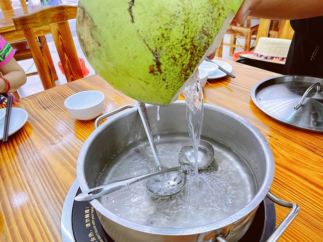 中午就在市场里的林-姐椰子鸡用餐,因为椰子鸡是非常流行的一种美食,也是海南的特色。所以我们想着再去品尝一番。你会发现这里很热闹,因为处于第一市场。边走边逛,饿了正好进来吃。几个椰子倒进锅里,再把文昌鸡倒入锅内,等热了以后,工作人员会给每人人舀上一碗椰子鸡汤,味道超好喝。椰子鸡配上特制小料,特别美味。