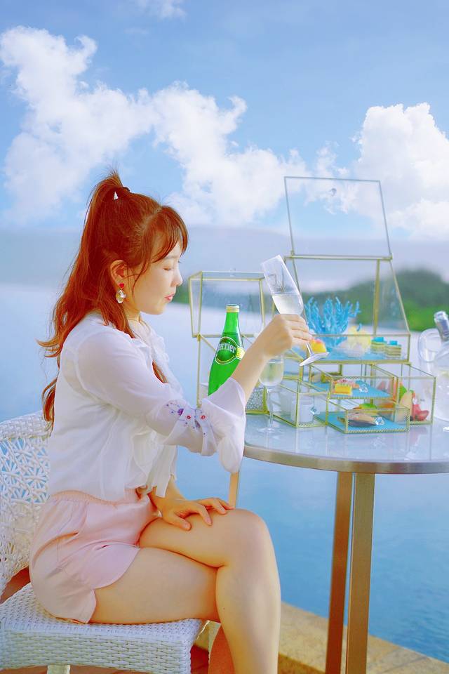 这个项目我强烈推荐,不仅仅是因为风景无限,而且下午茶的颜值太高了,口味也相当不错。蓝色的主色调,和泳池的颜色相得益彰,几个小姐妹就在这里分享彼此之间的心事和秘密,感觉棒棒哒。