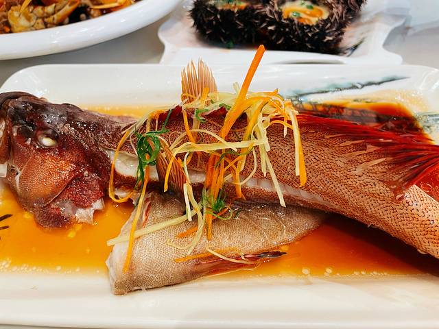 清蒸石斑鱼:石斑鱼也算是三亚非常地道的一道菜了,做法很多,我们选择了清蒸,口感和味道都非常的质嫩爽口。