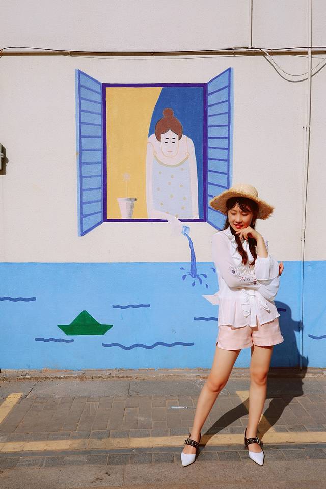 2、 穿衣搭配:不妨穿一些比较亮色的衣服,拍照好看,而且可以比较突出人像。