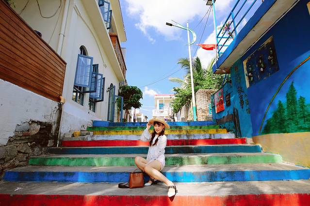 其中有一条街道有个酒吧,台阶看似普通,但是实际上走下去往上看的时候才发现不一样的独特。每一个台阶都有不同的颜色,好像彩虹一般。拍照或者坐下来休息都是很好的享受。当然女生们在这里肯定少不了拍照,我们几个还特意找了台阶拍照的一些姿势,也算是用尽浑身解数了。