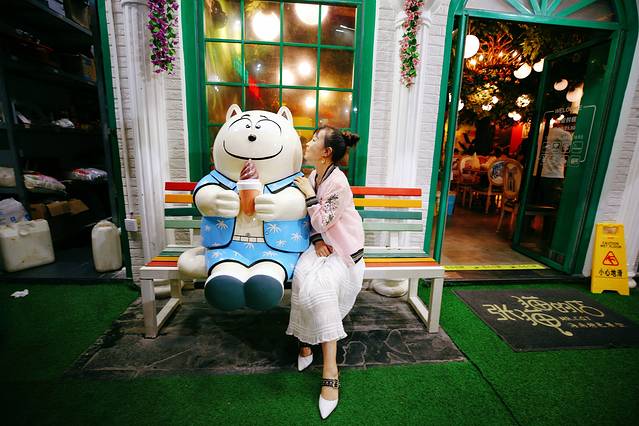 💡店内环境:和很多朋友口中描述的一样,不用走进店内就已经跃跃欲试想要去拍照了。张猫猫已经在门口等候了。见到这么可爱的猫根本不想走了。