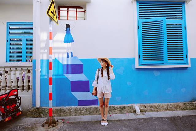 蓝白色调是他们的建筑本色,整个小镇有不同街区,每条街都以青、黄、白、黑、红的颜色的龙命名,小镇房子风格看似随意却又统一,保留了原有的味道又带有一丝丝东南亚风格。 来到这的时候有种重游东南亚的感觉,可以看到街边坐着闲聊或休憩的居民,不禁感慨村民的生活平静而祥和。