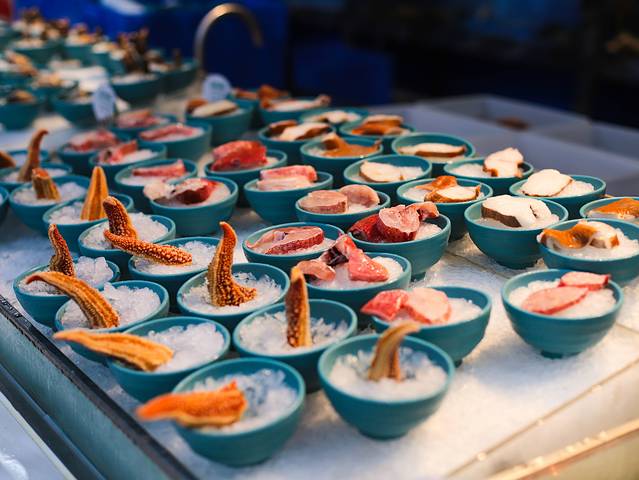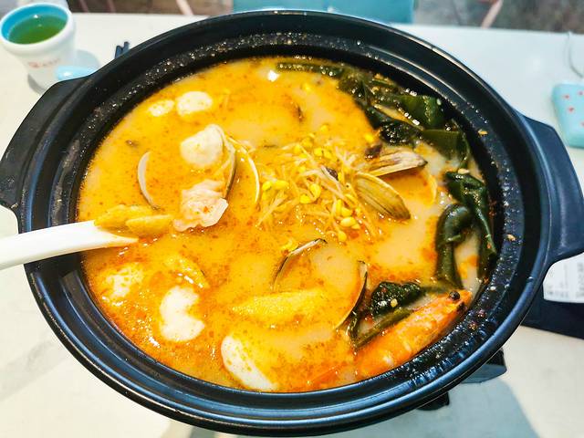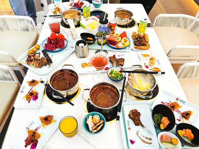 言归正传,说好是自助餐,其实是自助火锅,一人一个小火锅,口味可自选,然后就可以去疯狂拿吃的了。海鲜区域是这里的主打,不仅有各种各样的美味海鲜,还有我没吃过的海星,居然也可以用来涮火锅哦~