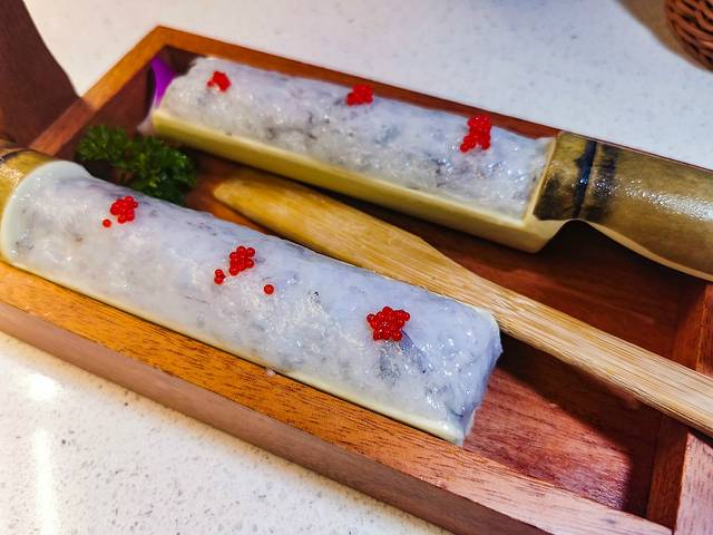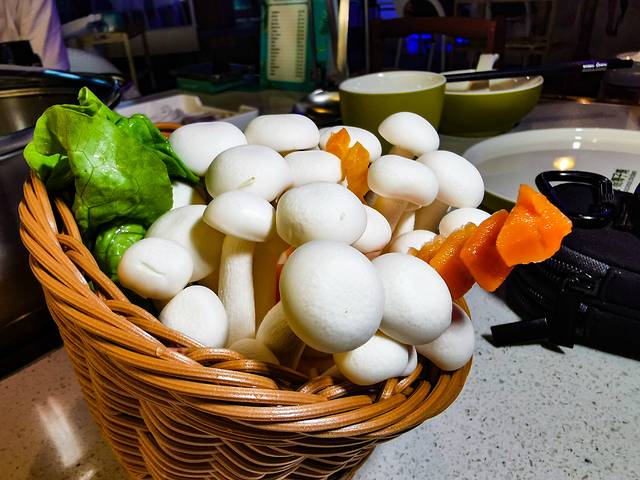 不过吃完鸡肉,还有其它一些配菜呀,海南香芋软糯的很,经过椰子鸡汤的过滤以后,味道就更好了,还超级有营养。海南大圆贝我们要了两份,真的超级好吃,在锅里涮一下就可以入口了,新鲜紧实入味。还有朋友最爱的虾滑,一份虾滑,有两小份,这下可以吃足吃过瘾了吧~