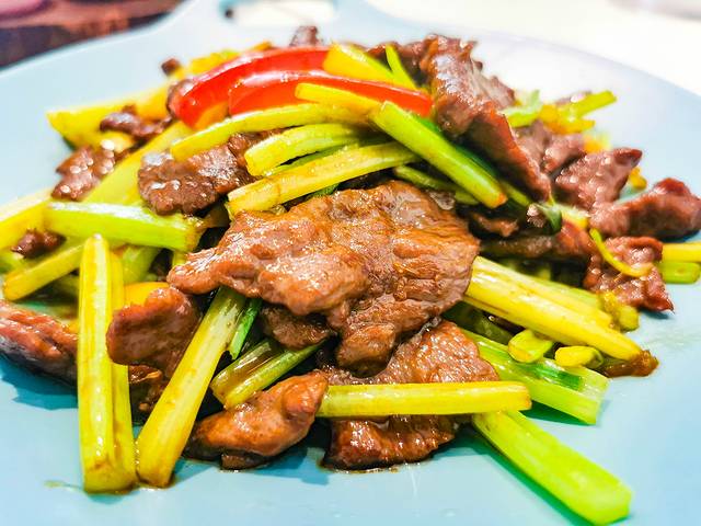 我们这一次只有三个姑娘,所以点菜也是比较隐忍的,怕点太多吃不完浪费。不过今年的菜品和去年我来的时候比起来,有一些变化哦,本着尝鲜的姿态,我们点了海鲜糟粕醋,点了店里经典款孜然海南东山羊小排,点了香芹爆炒黄牛肉、步步高升虾球、阿婆手工豆腐,还有甜品芒果卷,和好喝的芒果汁和百香果汁。