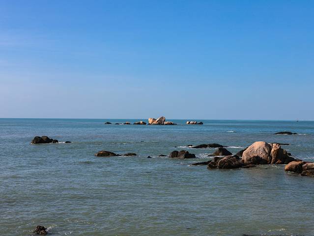 出来以后就直奔我们的主要打卡目的地,也就是“天涯”石、“海角”石、“南天一柱”这几块重量级的大石头了。“海角石”位于景区西北方,是海边矗立着巨大的花岗岩石。“天涯石”位于景区西北方,是景区的标志和象征,高10.8米,周长约66米,独占海湾一角,有亿万年的历史。“南天一柱石”位于景区西北方,石一颗高耸的圆锥形奇石,高约7米,侧面看像一艘古船上升起的双桅帆。