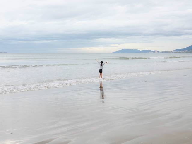 三亚湾是三亚一条狭长的海湾,绵延22公里,因为距离市区和机场都很近,所以来三亚湾的游客也是络绎不绝的,不过这台风天,海滩上的游客少了很多,只有跟我们一样想要迎接台风的人在这里吧。