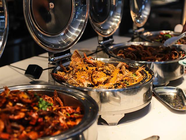 回到市区,因为中午在锵锵蟹的体验超好,锵锵蟹所在的海角院子里有好几家餐厅,距离我们居住的地方也很近,所以我们决定,把海角院子作为我们的主打聚餐地,一家一家吃过来。而自助餐是大家都爱的项目,一拍即合,268元一位,可以想吃多少吃多少。