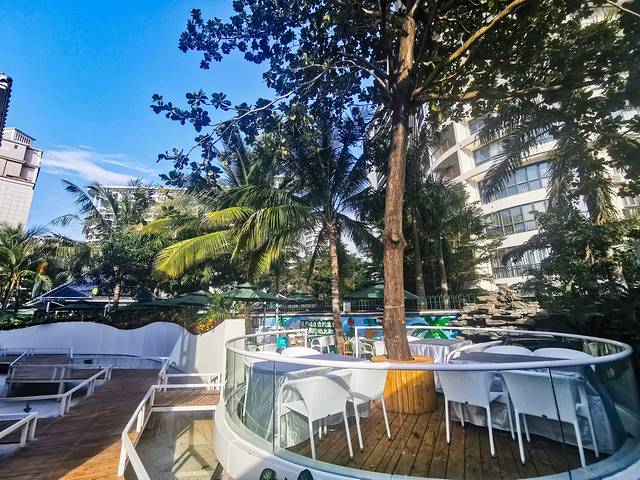 对了,这家自助餐叫大悦洋海洋餐厅,餐厅是露天敞开式的,在三亚这种地方,这样的露天餐厅不少,不过大悦洋装修的很有风格,海岛雨林风,还设置了透明圆球包房可以体验,也很适合拍美照。可惜我们到来那天台风下大雨,吃的不够尽兴~