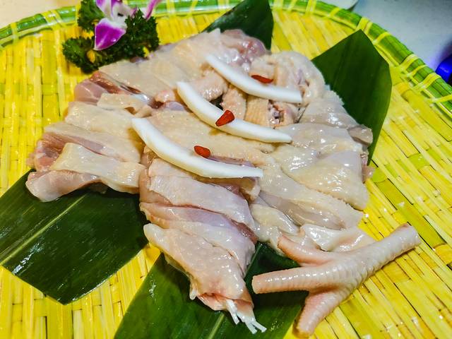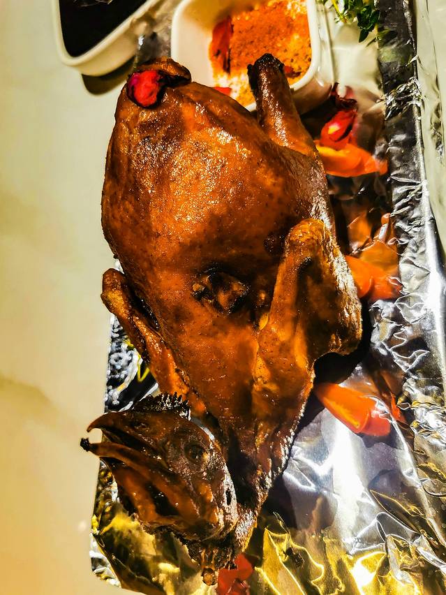 之后上来的菜,还有糖豉汁香蒜黄鱼、脆皮文昌鸡、西湖牛肉羹、家积茄子、孜然花生芽。文昌鸡和其它店的不一样哦,这里居然是一整只鸡端上来,大家再手撕,不过这样也很过瘾,吃完吮指,完美。