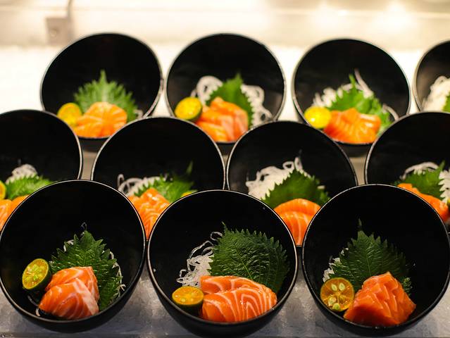 再往里面走有日料、铁板烧、水果、饮料、甜品区域,当然也有很多种加工好的熟食,火锅其实主要是用来烹煮海鲜用的。总之来到这里,只要能吃得下,真的是超值体验哦~