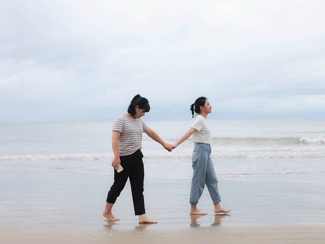 一旁的情人树也很有趣,两颗椰子树被台风吹弯了腰,人类发挥了想象力,这里就是情人树啦~