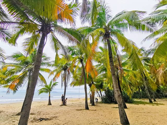 这种天在海边游玩,最不爽的就是拍照灰灰的,天是灰色的,海是灰色的,沙滩看上去是灰色的,就连岸边的椰子树林都失去了光彩。