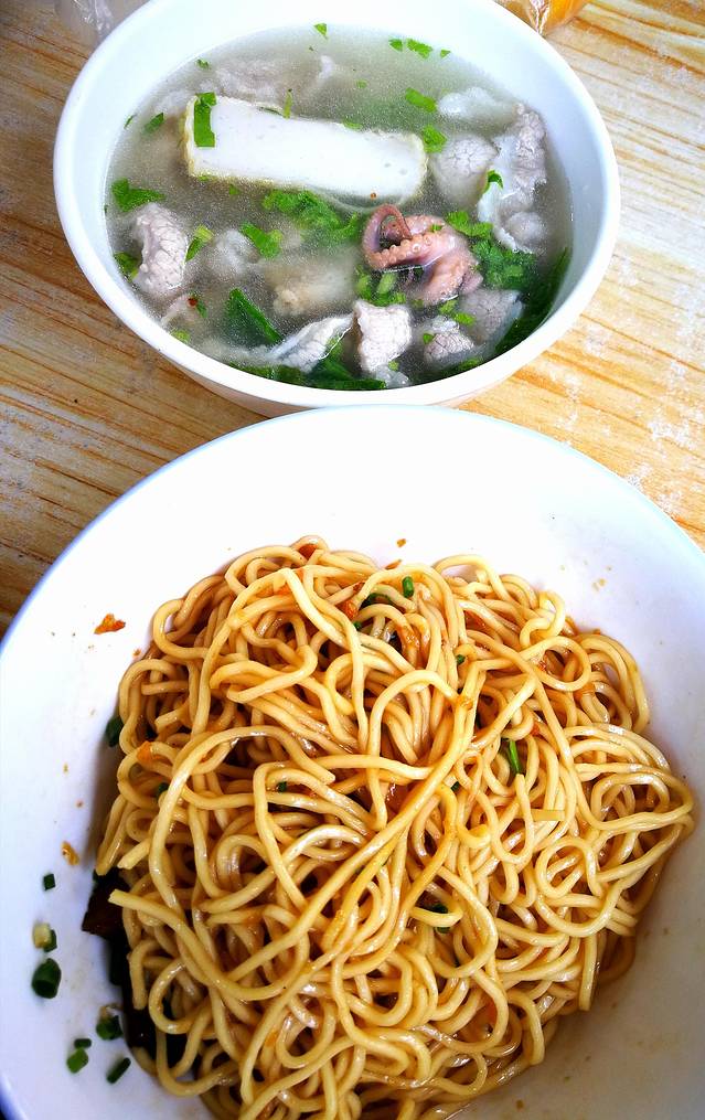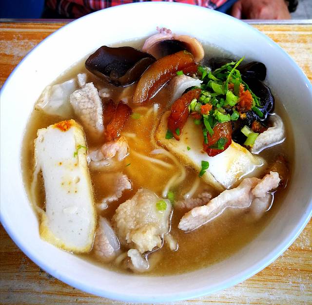 没找到面线,本想着去找亲戚家的面店,转来转去没找到,看到有一个可以停车的位置,在附件看到一家捞面,看着挺吸引人的,于是停车进去整了一碗汤面跟一套捞面,真还不错嗯