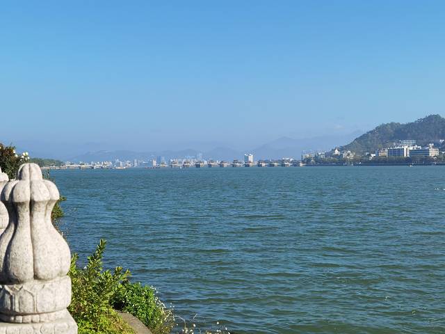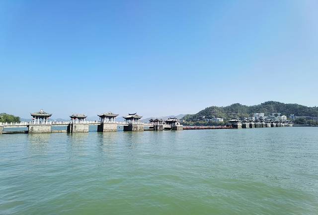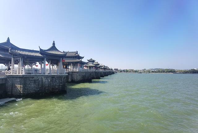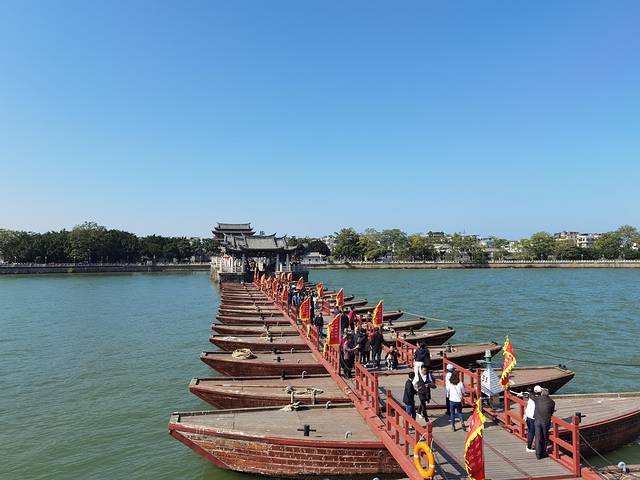 广济桥是中国古代著名桥梁之一,始建于南宋乾道六年(1170年),历时57年建成,全长515米,分东西两段18墩,中间一段宽约百米,因水流湍急,未能架桥,只用小船摆渡,当时称济州桥。明宣德十年(1435年)重修,并增建五墩,称广济桥;正德年间,又增建一墩,总共24墩。桥墩用花岗石块砌成,是中国桥梁建筑中的一份宝贵遗产。中段用18艘梭船联成浮桥,能开能合,当大船、木排通过时,可以将浮桥中的浮船解开,让船只、木排通过。然后再将浮船归回原处。