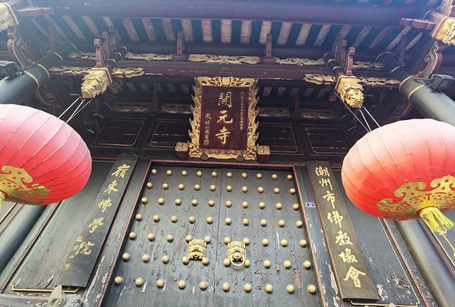 开元镇国禅寺始建于唐开元26年(公元738年),且至今仍存有北至广源街、东至开元路口、西于义安路内的寺界碑石或“开元古井”为证,虽经历代沧桑,至今全寺仍有约五十亩之广。以木料构筑的主要殿阁,是以木榫紧密衔接的,并以雕刻着龙头的斗拱送起支撑;殿顶为四重檐、双滴水,还有葫芦、鸱屋、双龙抢珠等嵌瓷装饰及琉璃瓦、彩绘丹墙等,殿前四座石经幢,是建寺时所造,分别高5米8层或7米25层,其线条明快、凝炼的雕刻手法,让力士、覆莲、准提咒等图案文字,至今仍有可观;而大雄宝殿前的78块栏,分别刻有释迦牟尼佛八相成道的故事。