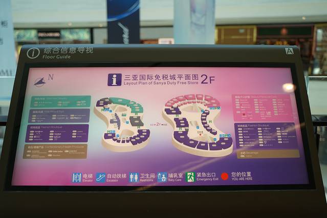 免税城分为A、B两个区,三楼中间连廊连通,可相互通过