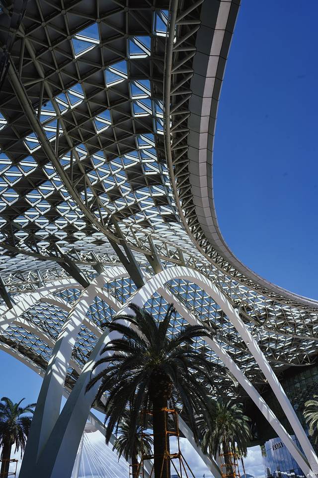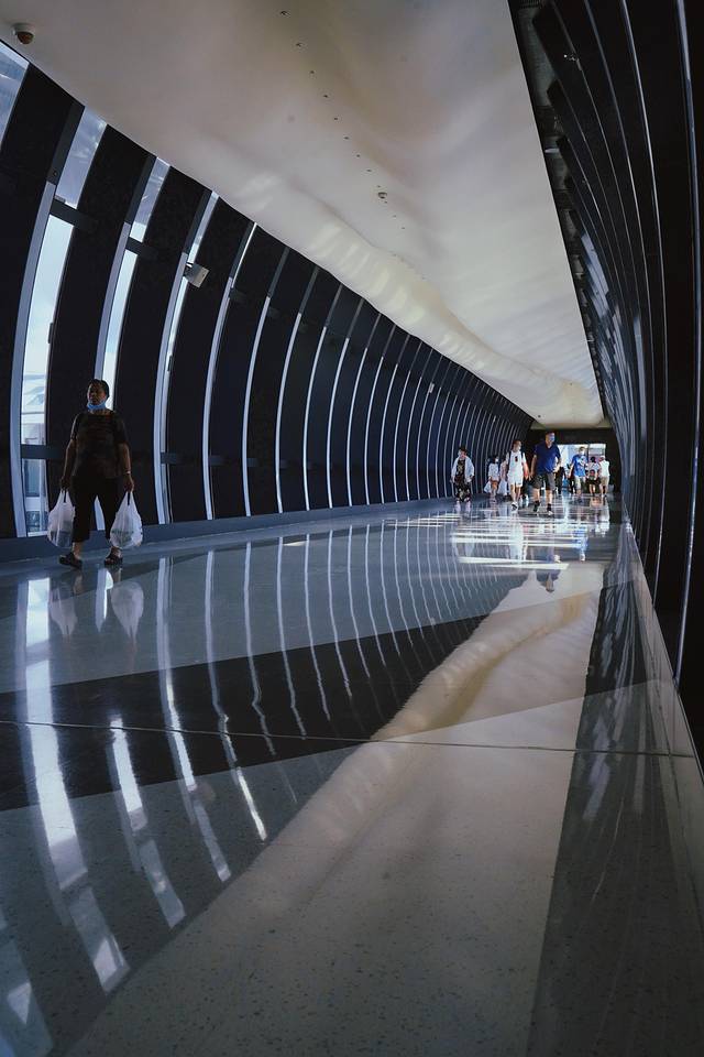 三亚国际免税城占地7万多平方米,是全球最大的单体免税店,真的挺难走的。造型很有设计感,钢结构搭建成一朵巨大的花,有点刚柔并济的意味。