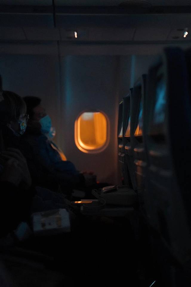 撕登机牌的时候会被要求洗手(免洗洗手液)、登机的时候,空乘会给乘客逐一测量体温。