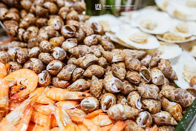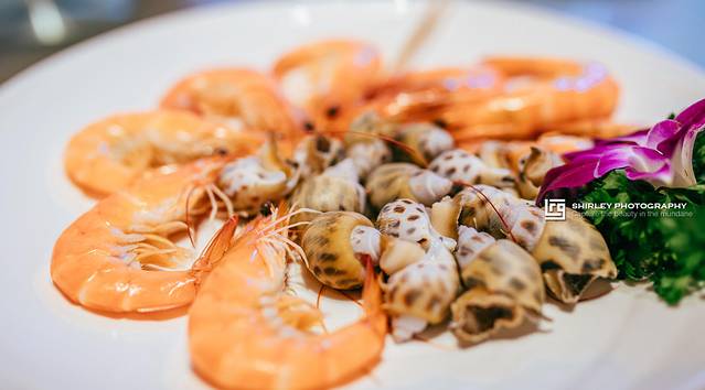明虾与花螺的白灼海鲜拼盘,由于食材新鲜,因此只以最简单的白灼做法就已经很原汁原味了!虾肉和花螺肉质很鲜弹,配上餐厅准备的酱油,实在太绝了!