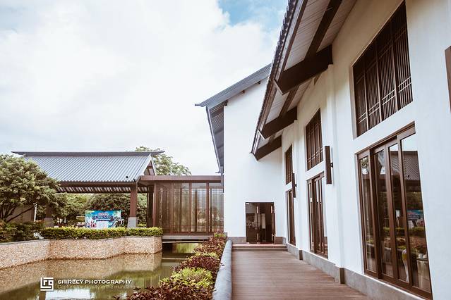 御水古温泉具体位置在茂名市的东部,从茂名站驱车前往的路上,一路都是非常淳朴原生态的乡村。如果不是事先预订了酒店,难以相信这里藏着高大上的温泉度假村。御水古温泉就位于层层叠叠的山林之中,中式风格的楼宇屋点缀其间,沉稳的灰白色系与青翠灵动的绿色相得益彰。风一吹颇有一种“独坐幽篁里,弹琴复长啸”的境界,无论何时,这里都可以用静谧幽深来形容。