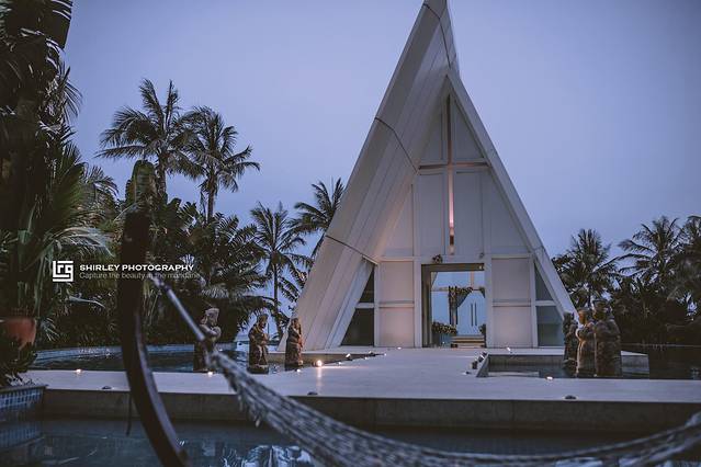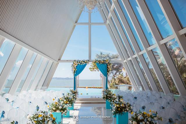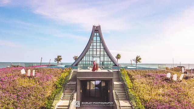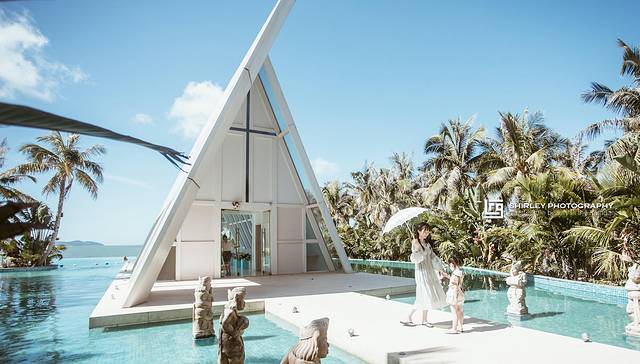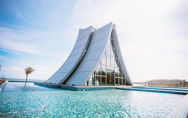 位于温德姆酒店无边泳池一侧的水晶教堂,应该是整个浪漫海岸最浪漫的地方了!都说浪漫海岸具有网红打卡地属性,光是无边泳池与网红玻璃船自然不够,其中的重磅级打卡点,就是这水晶教堂了。温德姆酒店凭着得天独厚的环境,吸引很多新人会来这里拍摄婚纱照或举办婚礼;因此好像没有比在这建一座婚礼殿堂更合适的了。