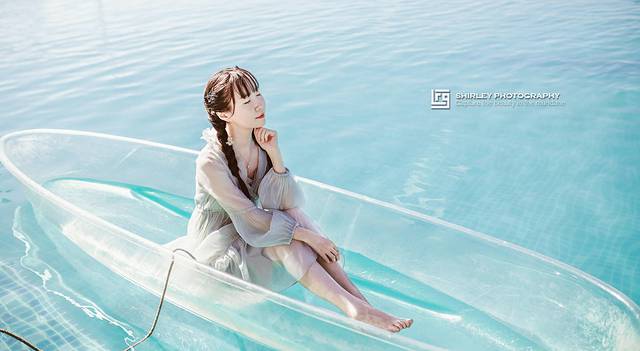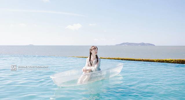 无边泳池本身拍照就够好看,有了网红玻璃船的加持,出片效果更上了一个level!第一次尝试玻璃船发现还是有些拍摄难度的,在偌大的泳池里四处飘的时候多亏热心游客把我推回岸边;安全起见这里的船只有成人可以借来拍摄,可把我Suyi羡慕坏了。