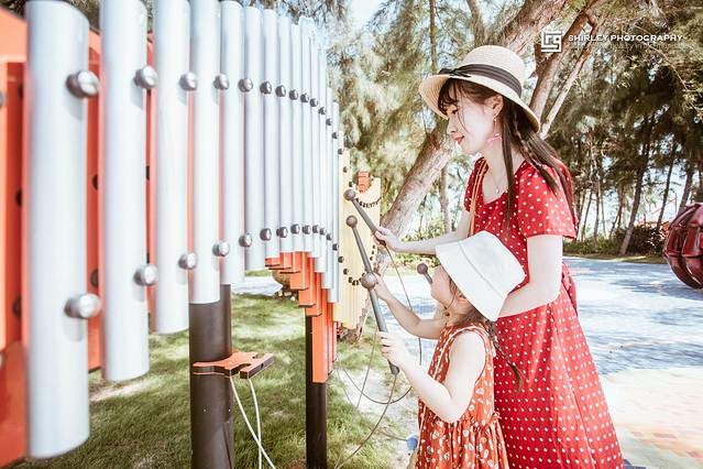 叮叮当当的敲击乐最适合吸引小宝宝们的注意,我们路过时也随意摆弄了几下。亲子乐园虽然没有特别炫酷的装置,但是这里所有的项目都旨在让久居城市的孩子们能离开空调房,舒展身心,肆意挥洒汗水......伴随着浪花与海边清新的空气,留下童年里最快乐的回忆。