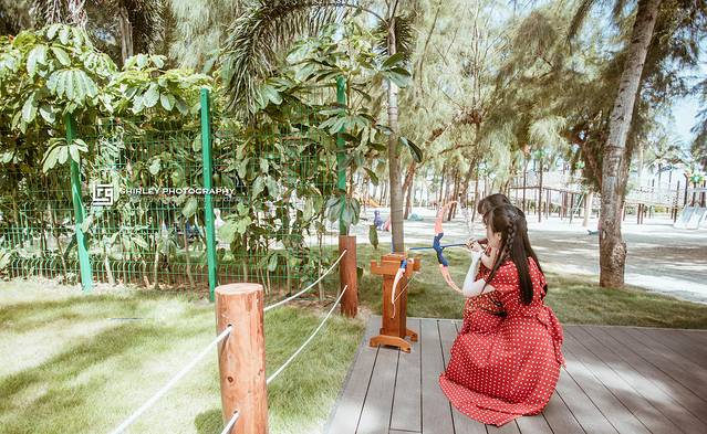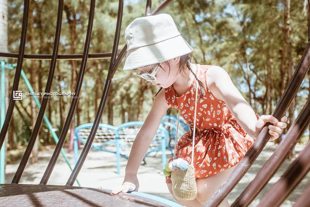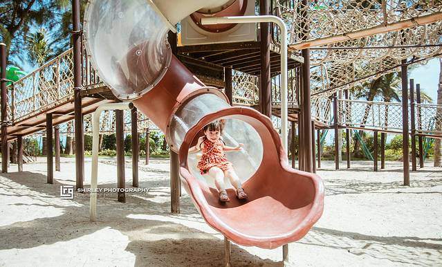 虽然是下午,但是亲子乐园建在海边,又有遮天蔽日的植物,玩起来也不觉有多热。Suyi全程兴致高涨,见滑梯必滑,见绳网必爬,如此彻彻底底的放电,相信她晚上一定能睡个好觉。